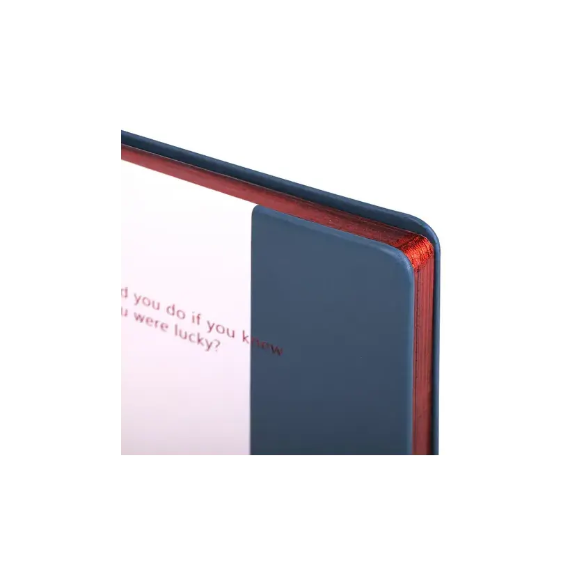 Внутренний блок включает 80 листов белой бумаги плотностью 70 г/м2. Благодаря стандартному формату А5 блокнот удобно использовать как в офисе, так и на выездных деловых встречах. Твердая (книжная) обложка с полноцветной печатью делает блокнот неповторимым и запоминающимся. Срез блокнота фольгирован красной фольгой, что придает ему особый шарм. Дополнением является закладка-ляссе, с помощью которой можно быстро открыть блокнот на нужной странице.