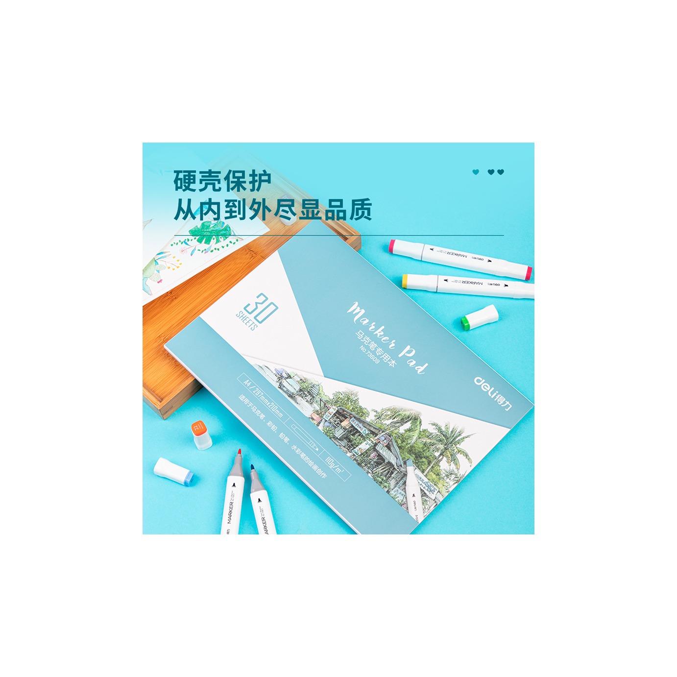 Специальный альбом- планшет (скетчпад) формата А4 подходит для рисования маркерами, акварелью, карандашами. Инновационная, трехслойная технология изготовления бумаги плотностью 110гр/м., от растекания чернил и красок. Плотная верхняя обложка из мелованного картона 250гр/м. с задней подложкой из твердого картона.