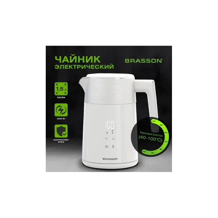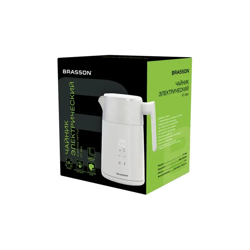 Электрический чайник BRASSON KT-264 превратит рутинное кипячение воды в приятный и безопасный процесс. Современный дизайн и отличная функциональность делают его незаменимым помощником на каждой кухне.
