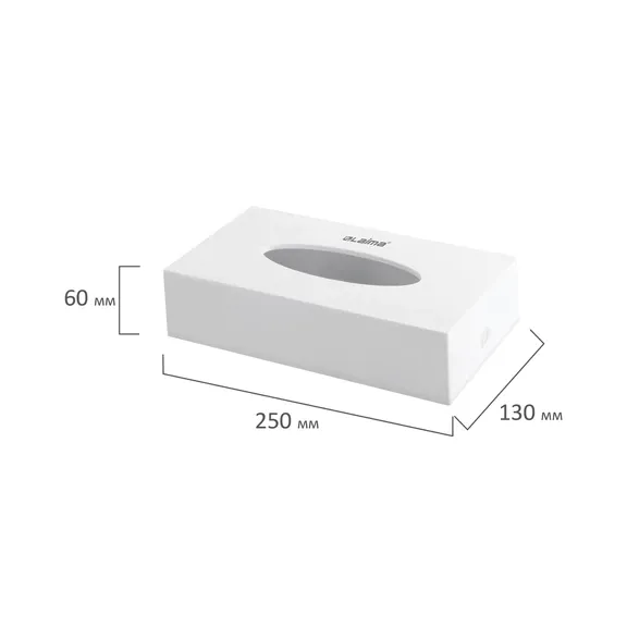 Антивандальный корпус изготовлен из ударопрочного ABS-пластика. Сочетается с расходными материалами других производителей. Вертикальное и горизонтальное расположение позволяет разместить диспенсер как на столе, так и на стене. Вмещает стандартную упаковку бумажных косметических салфеток или одноразовых перчаток на 100 штук (содержимое в комплект не входит). Обладает функциональностью и стильным дизайном, отлично впишется в любой интерьер. Выполнен в белом цвете. Размер – 60х250х130 мм. В комплект входят крепежные материалы для установки.