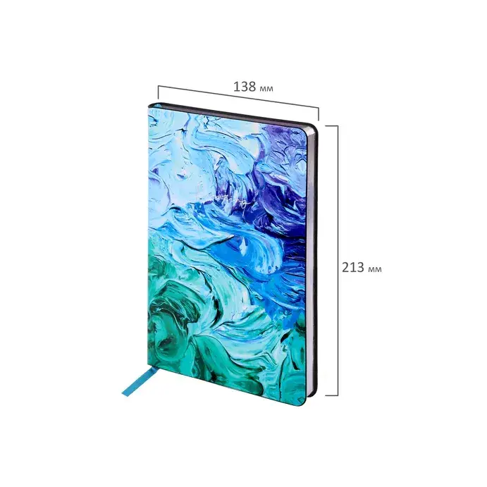 Внутренний блок включает 136 листов белой бумаги плотностью 70 г/м2. Благодаря стандартному формату А5 ежедневник удобно использовать как в офисе, так и на выездных деловых встречах. Интегральная (мягкая) обложка с полноцветной печатью и тиснением серебряной фольгой делает ежедневник неповторимым и запоминающимся.
