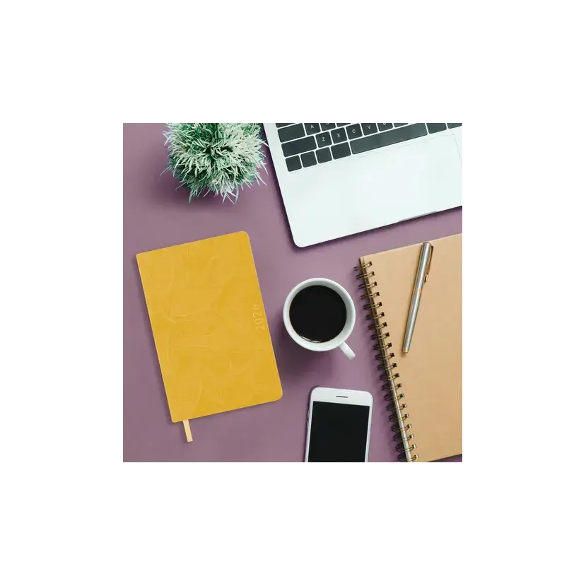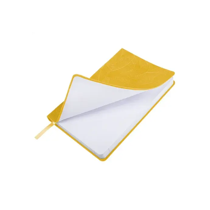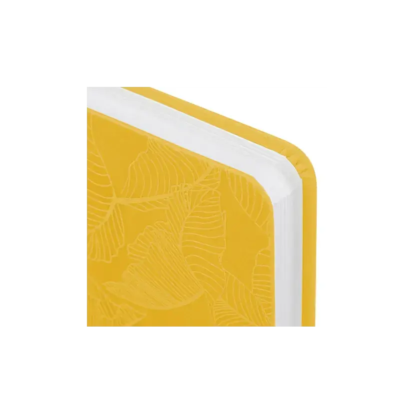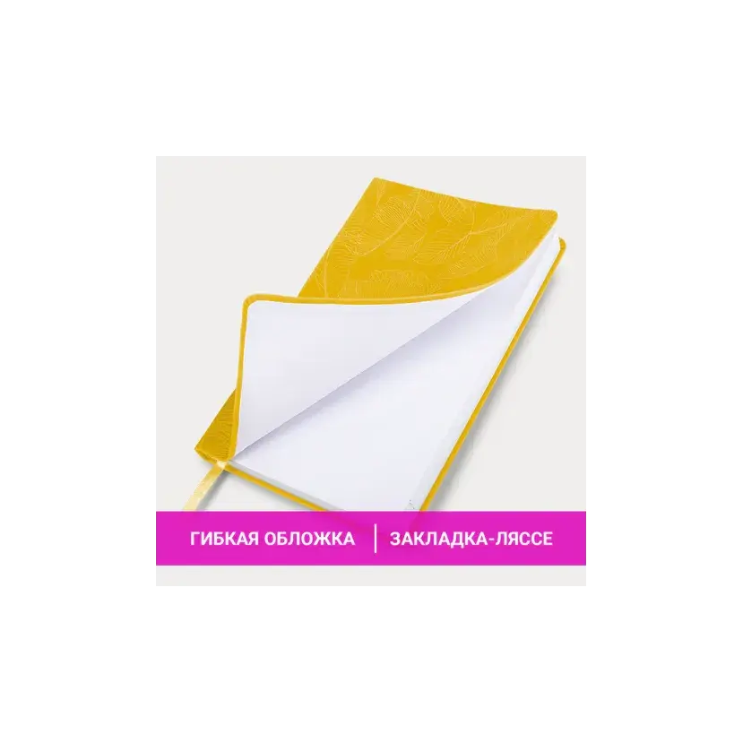 Мягкая (интегральная) обложка по-летнему яркого желтого цвета под гладкую кожу имеет декоративное тиснение, что придает ежедневнику особый шарм. Материал обложки подходит для горячего тиснения. Дополнением является закладка-ляссе, с помощью которой при необходимости можно быстро открыть ежедневник на нужной странице. Ежедневник снабжен обширным справочным материалом. В конце есть 4 страницы для записей и заметок.