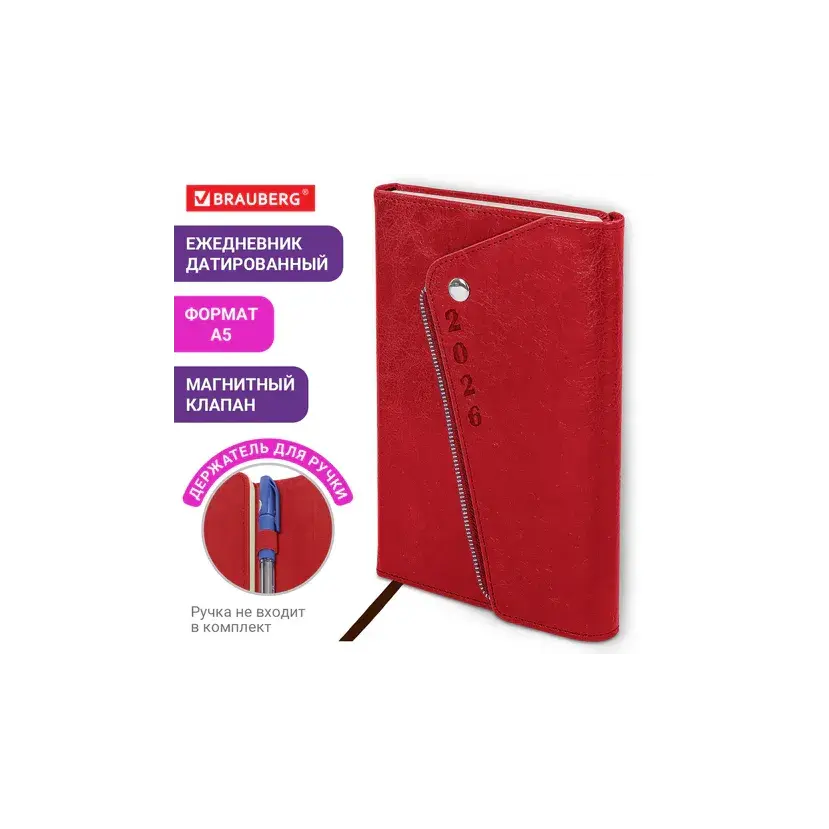 Датированный ежедневник BRAUBERG "Jacket" – это стильный и практичный аксессуар для планирования. Обложка из материала под кожу дополнена оригинальным асимметричным магнитным клапаном с кнопкой. Внутренний блок включает 168 листов кремовой бумаги плотностью 70 г/м2. Каждая страничка имеет перфорированный угол. Благодаря стандартному формату А5 (145х213 мм) датированный ежедневник удобно использовать как в офисе, так и на выездных деловых встречах.