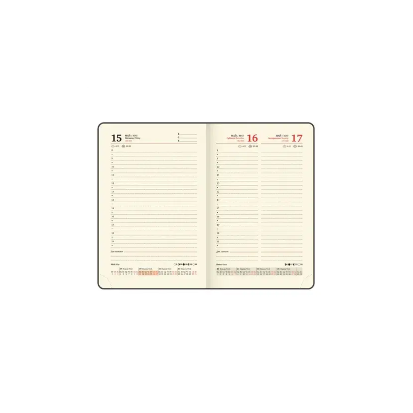 Твердая обложка классического коричневого цвета стилизована под кожу рептилии. Подходит для горячего тиснения. Срез ежедневника украшен золотым фольгированием – это подчеркивает премиальность изделия. Дополнением является закладка-ляссе, с помощью которой при необходимости можно быстро открыть ежедневник на нужной странице. Помимо прочего, ежедневник снабжен обширным справочным материалом. В конце ежедневника есть 4 страницы для записей и заметок.