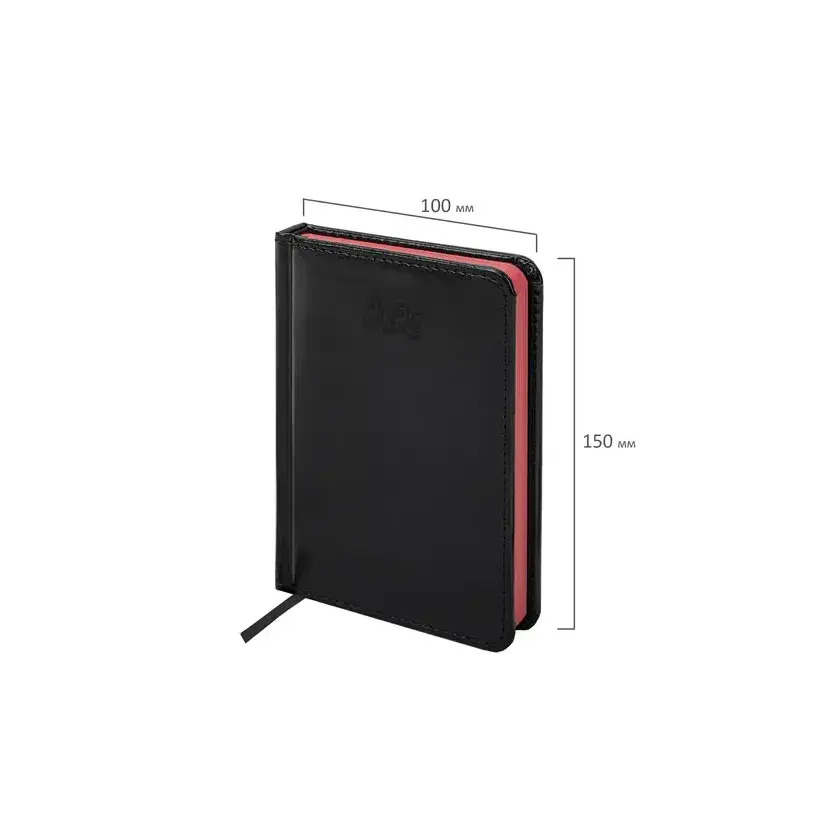 Твердая обложка черного цвета стилизована под гладкую кожу. Подходит для горячего тиснения. Срез и форзац ежедневника окрашены на контрасте с цветом обложки, что придает ему особый шарм. Дополнением является закладка-ляссе, с помощью которой при необходимости можно быстро открыть ежедневник на нужной странице. Обширный справочный материал расширяет функциональность ежедневника. В конце внутреннего блока есть 4 страницы для записей и заметок.