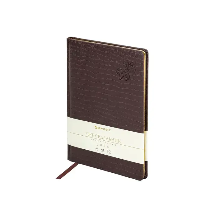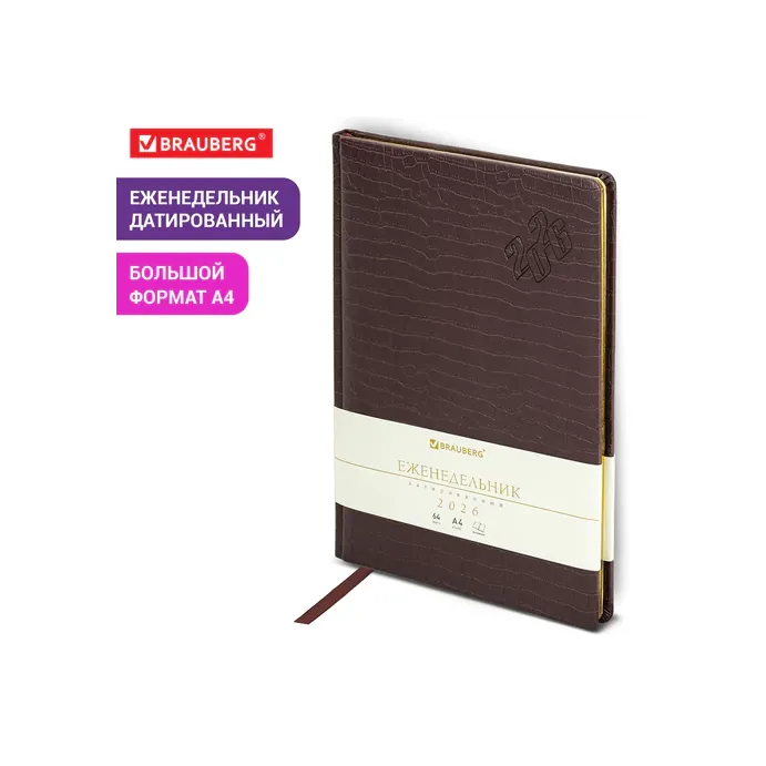 Датированный еженедельник BRAUBERG "Comodo" имеет обложку, стилизованную под кожу крокодила, что вместе с насыщенным цветом делает этот деловой аксессуар очень изысканным. Внутренний блок включает 64 листа кремовой бумаги плотностью 70 г/м2. Благодаря большому формату А4 (210х297 мм) еженедельник удобно использовать как в офисе, так и на выездных деловых встречах. Твердая обложка коричневого цвета, стилизованная под кожу крокодила, подходит для горячего тиснения.