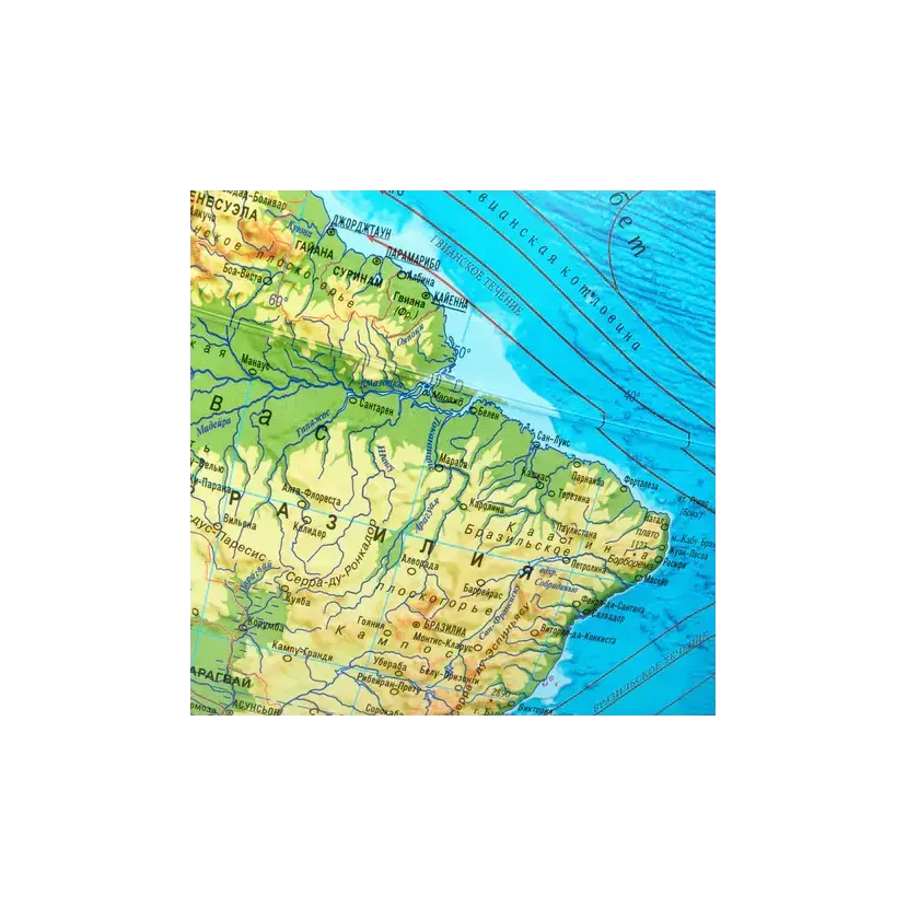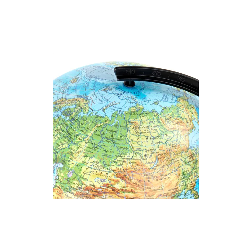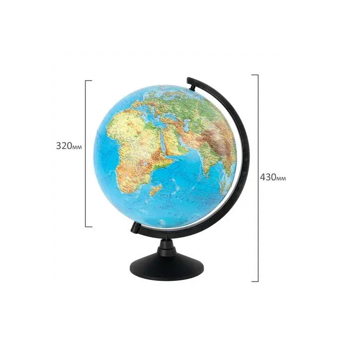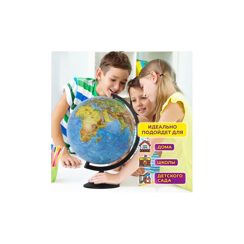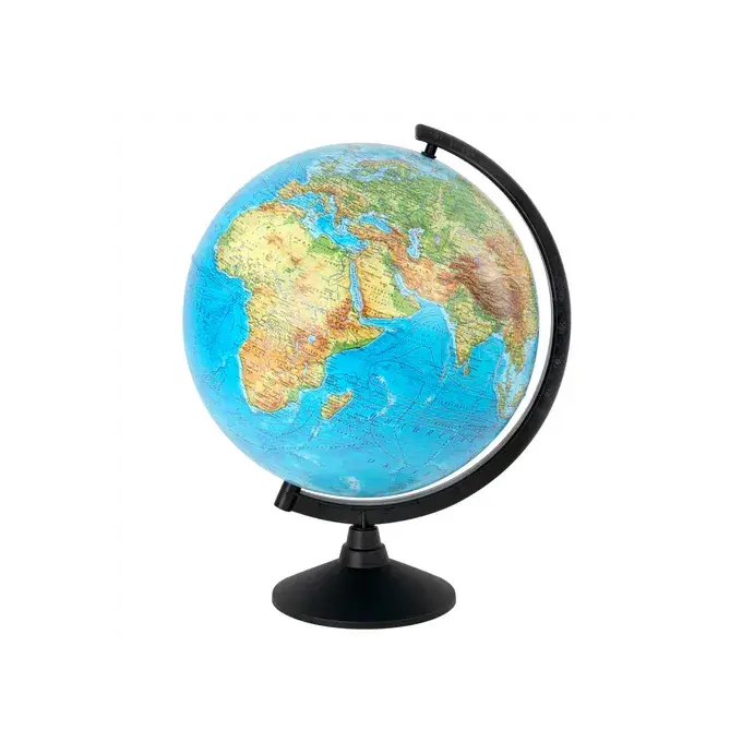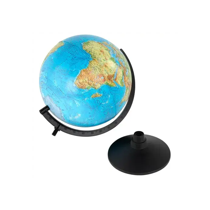 Глобус позволит ознакомиться с физической картой мира. Подходит для использования в детских садах и школах. Поможет узнать рельеф земной поверхности, абсолютные глубины океанов, найти самые высокие и самые глубокие места планеты.