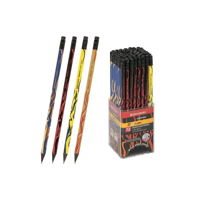 Чернографитный карандаш BRAUBERG "Flame" - первый помощник для выполнения проектно-конструкторских работ, позволяет сделать легкий набросок, быстрый стремительный рисунок или нарисовать полноценную картину. Легко затачивается, максимально устойчив к повреждениям. Изготовлен из чёрного дерева высокого качества, оснащен ластиком. Имеет круглое сечение. Карандаш длиной 190 мм обладает средней степенью твердости – HB. Цвет корпуса - ассорти.