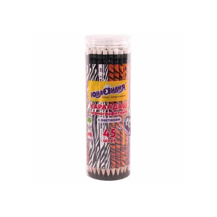 Карандаш чернографитный ЮНЛАНДИЯ "АФРИКА" изготовлен из дерева высокого качества и оснащен ластиком. Предназначен для детского и художественного творчества. Отлично подходит для выполнения чертежных, графических и художественных работ. Легко затачивается, максимально устойчив к повреждениям. Изготовлен из дерева высокого качества. Имеет круглый корпус с яркой печатью ассорти, оснащен ластиком. Карандаш длиной 190 мм обладает средней степенью твердости – HB.