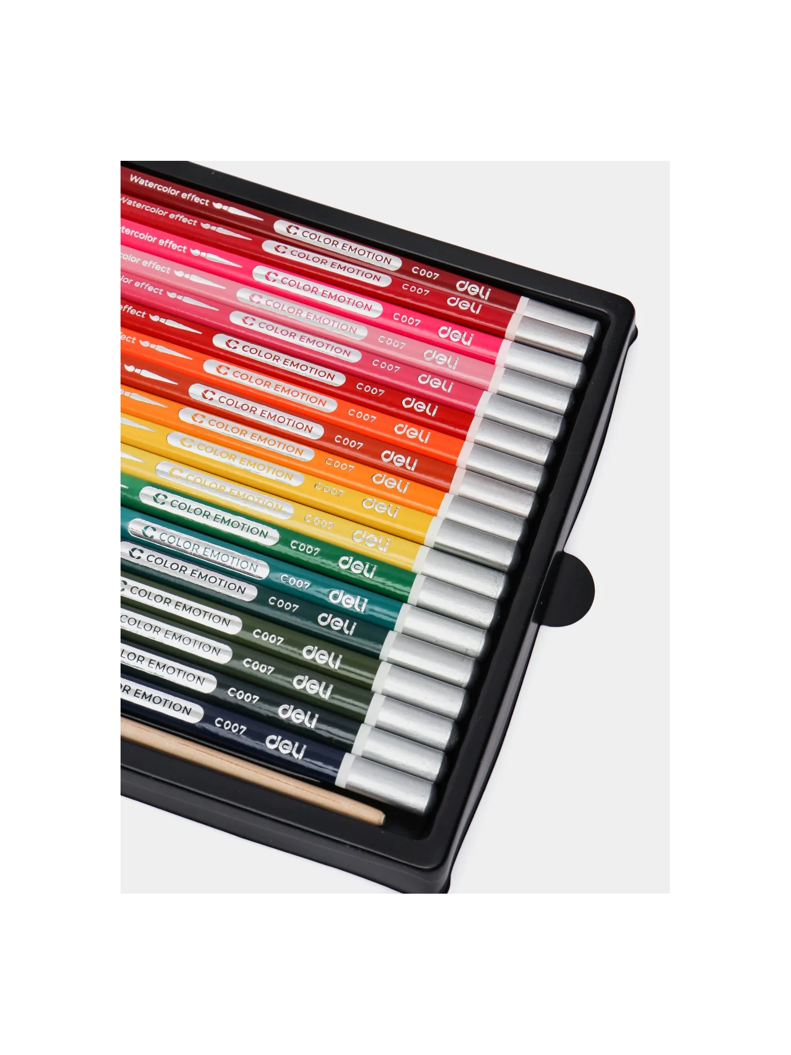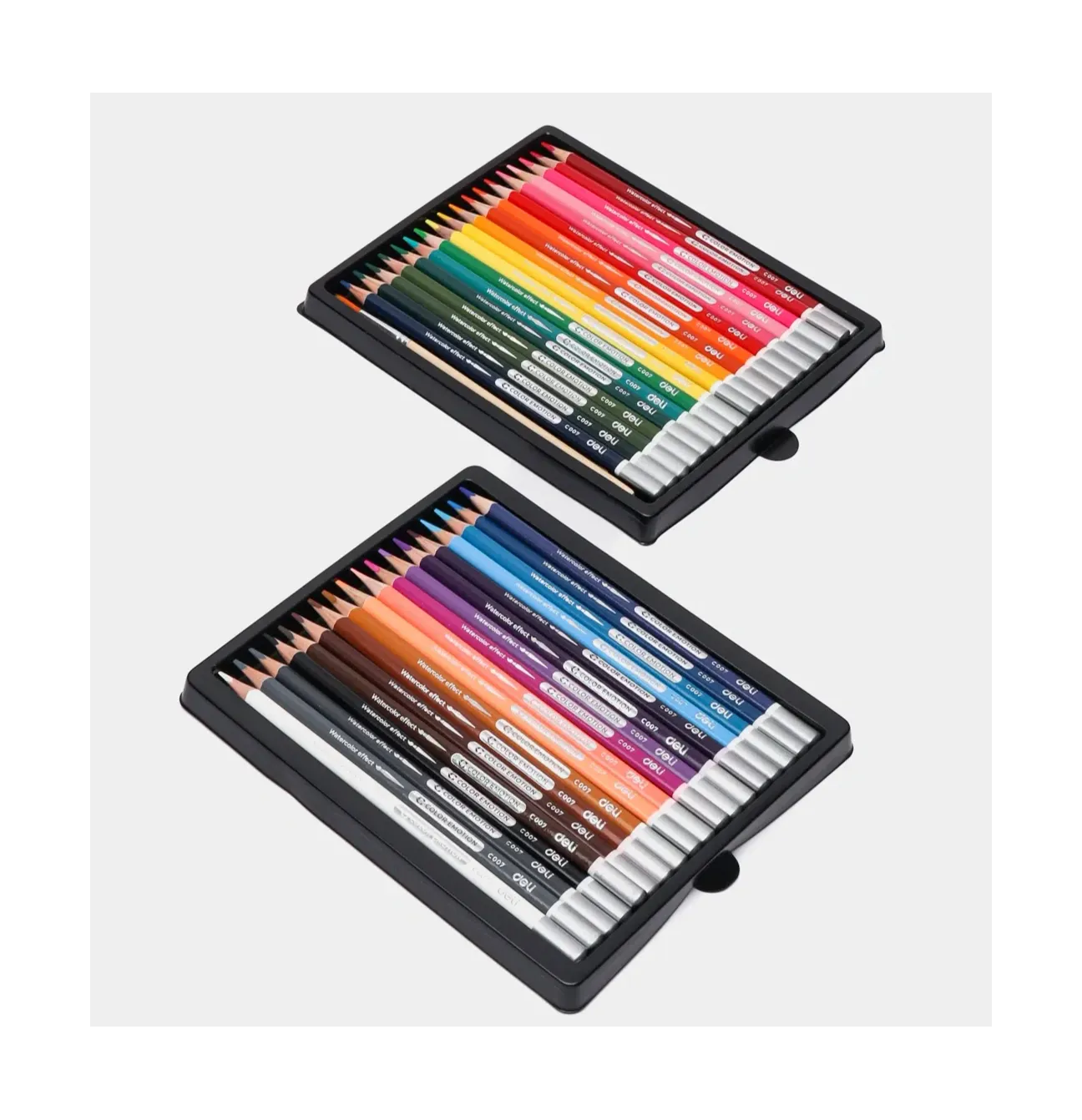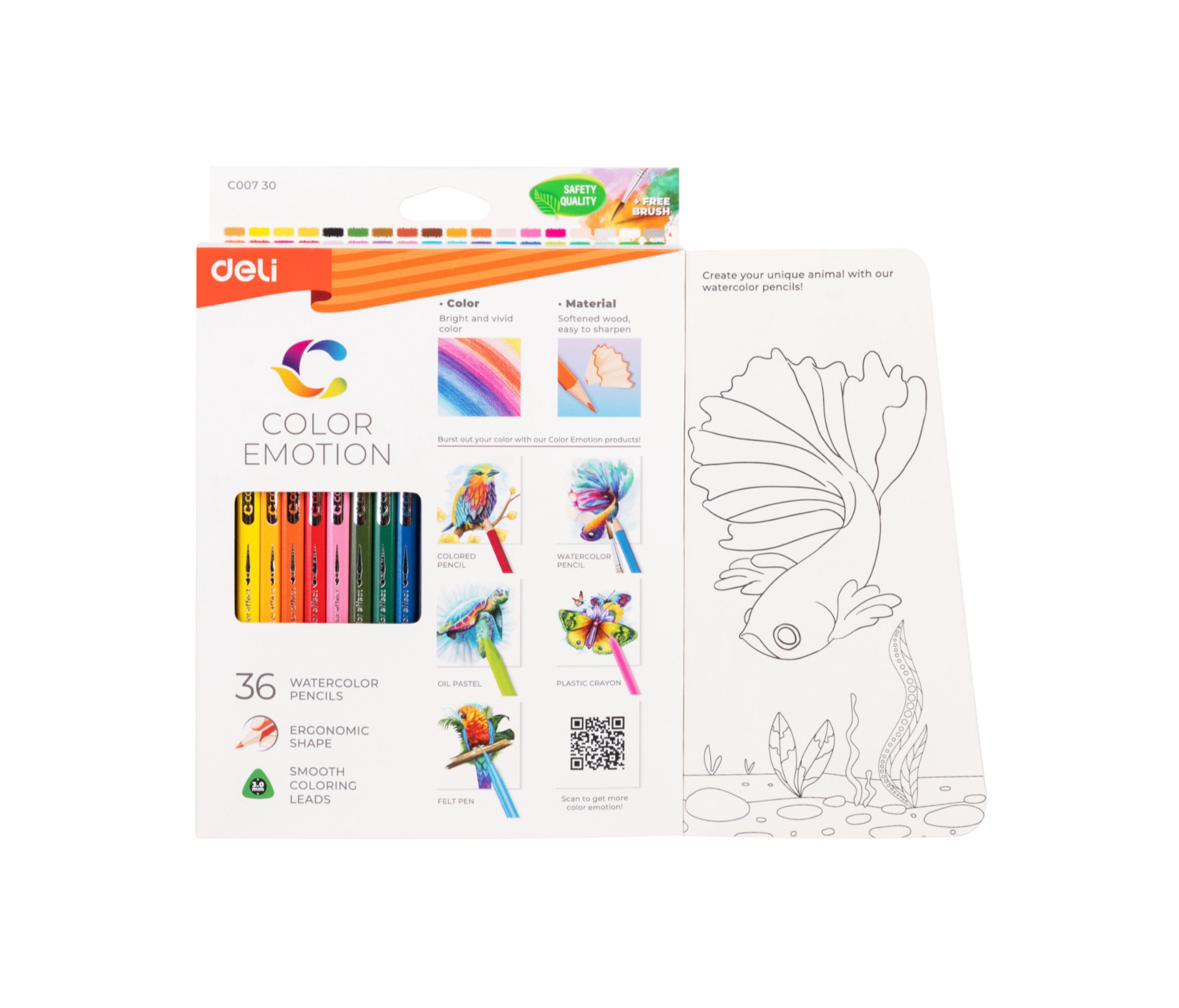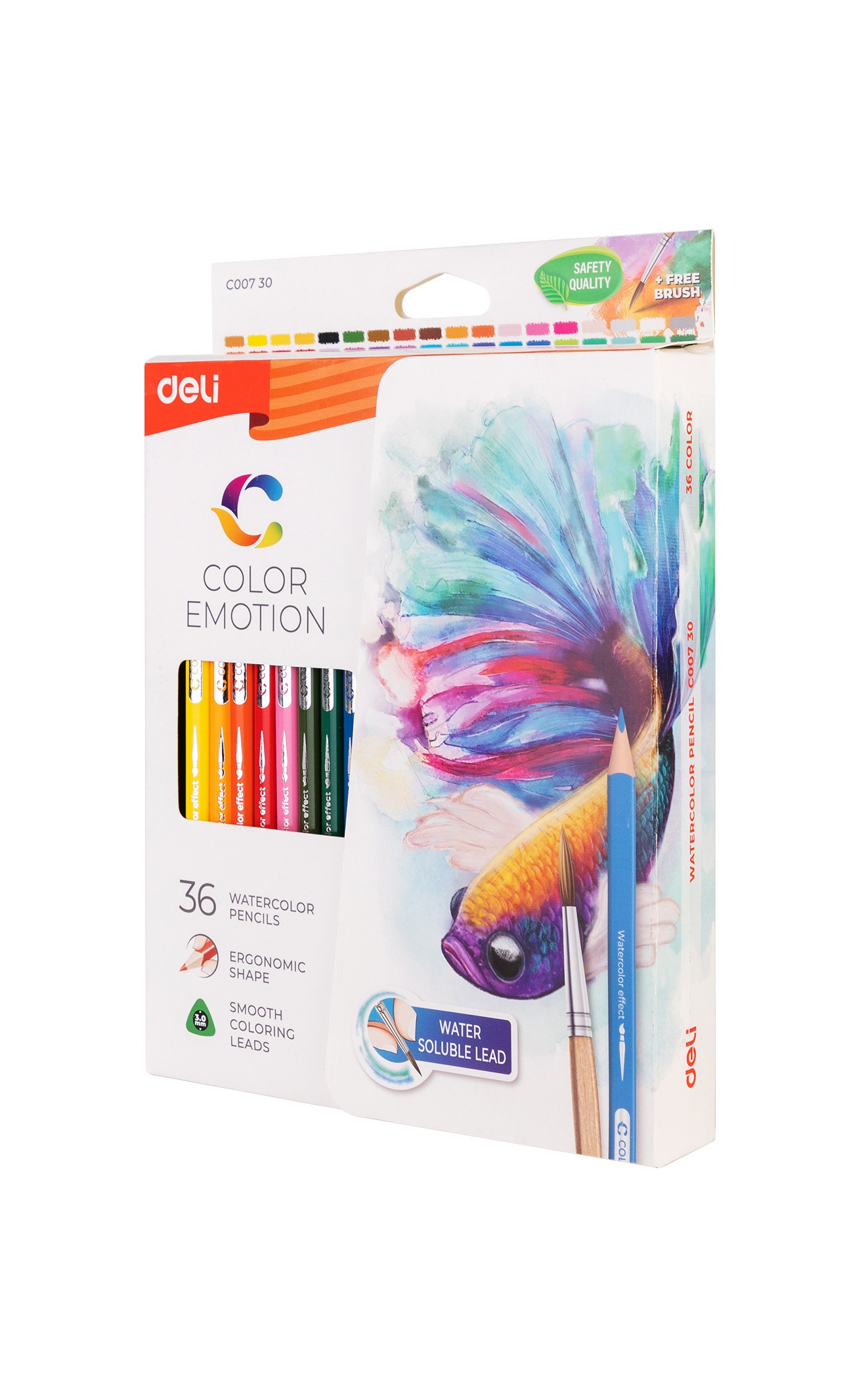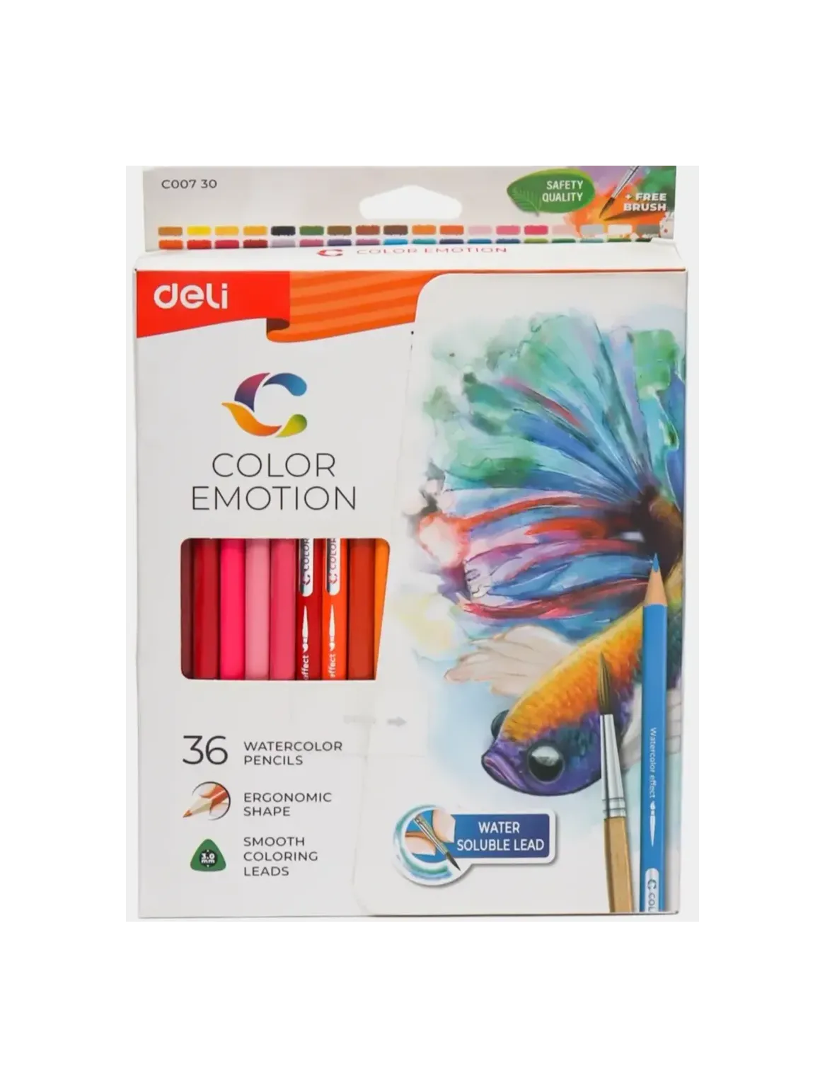 Цветные акварельные карандаши Deli Color Emotion 36 цветов, подходят для скетчей и иллюстраций. Трёхгранная форма корпуса обеспечивает комфорт при использовании. Цвет стержня совпадает с цветом корпуса. Это удобно для выбора оттенка. Грифель тонкий, мягкий, прочный и не крошится. Хорошо затачивается. Карандаши смешиваются, имеют 100% интенсивность окрашивания. Пигмент профессионального качества. Устойчивы к свету. При размывании водой создают эффект рисунка акварелью. В комплект входит кисточка.