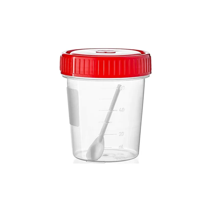 Емкость-контейнер для сбора биоматериала стерильная (с ложкой), объем – 60 мл. Контейнер для анализов предназначен для сбора и транспортировки на общеклинические исследования проб: мочи, мокроты, ликвора, выпотных жидкостей, слизи, ткани, патоморфологического материала и других биологических материалов. Используются в медицинских учреждениях (больницы, поликлиники), в лабораториях, научно-исследовательских учреждениях и в быту.