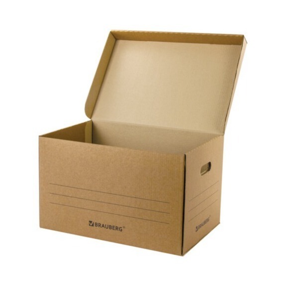 Архивный короб BRAUBERG предназначен для хранения и перевозки документов в накопителях или папках-регистраторах. Изготовлен из 100% первичной целлюлозы марки Т-24, профиль «В».