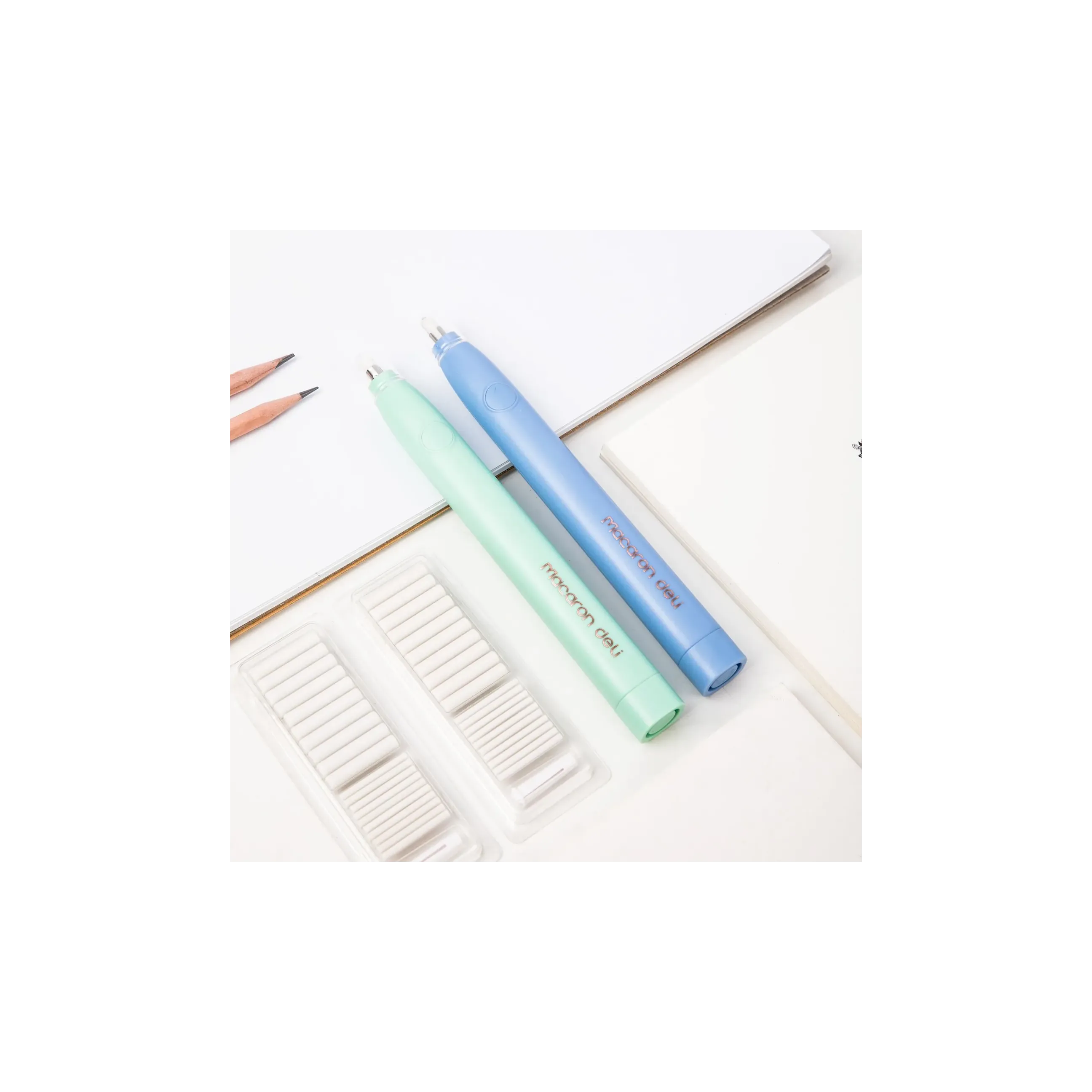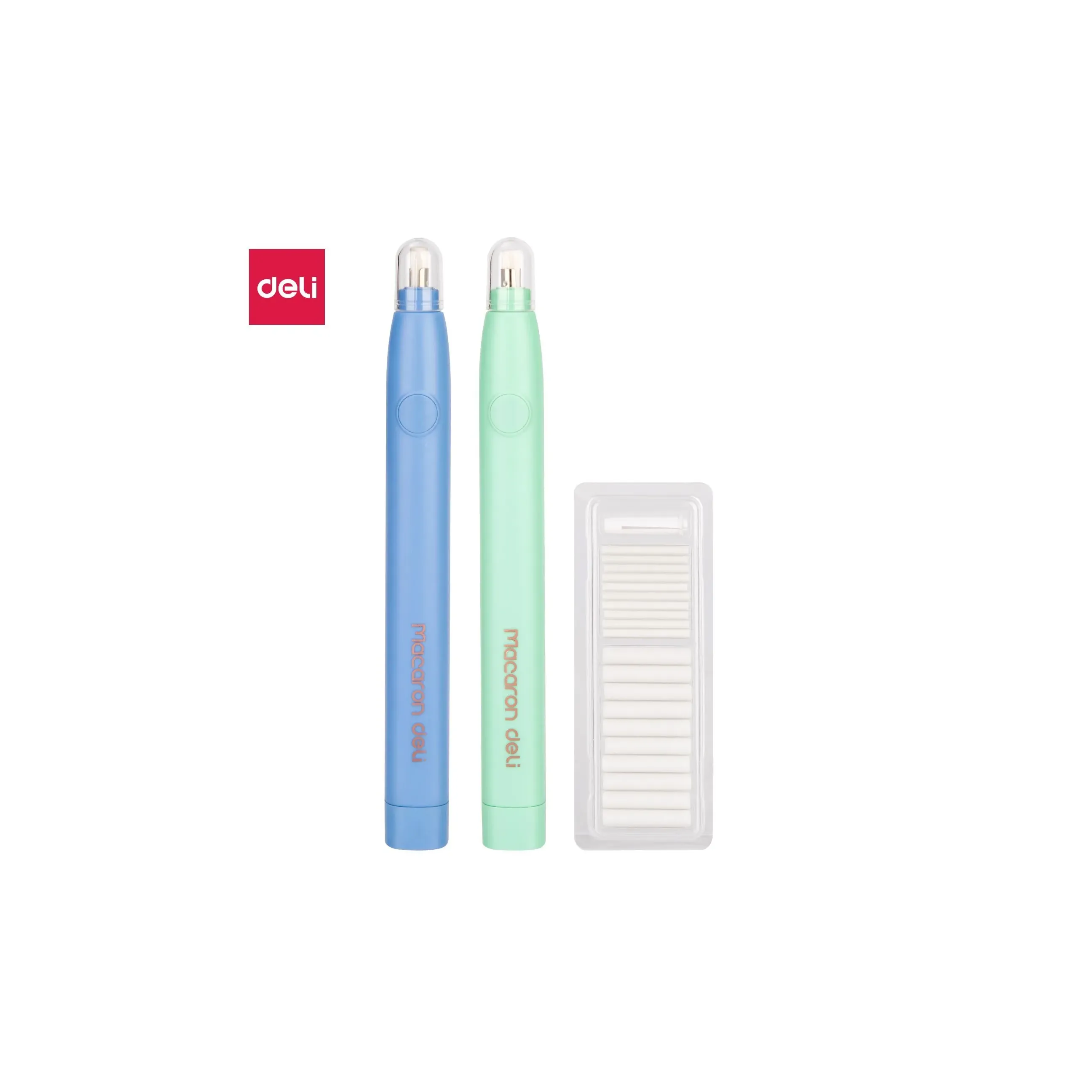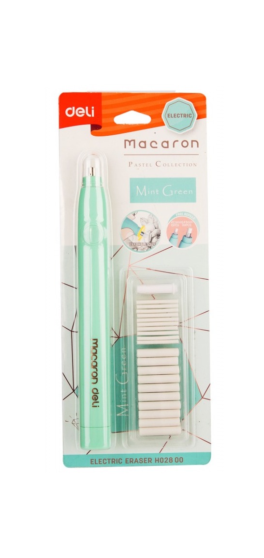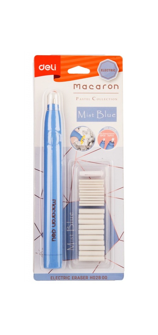 Электрический ластик Deli Macaron - это инновационное решение для быстрого и эффективного удаления pencil marks с бумаги. Компактный и эргономичный, этот ластик, размером всего 178х17х18 мм, удобно лежит в руке и позволяет легко контролировать процесс стирания. Deli Macaron работает от двух батареек типа AAA, обеспечивая длительное время автономной работы. Его уникальная конструкция позволяет использовать два типа ластиков по толщине, что делает его универсальным инструментом для различных задач. В комплекте 20 ластиков: 10шт диаметром 2.5мм и 10шт диаметром 5мм. Стирайте карандашные пометки без особых усилий. Ластик упакован в блистер, что обеспечивает его защиту и удобство хранения. Размер упаковки: 190х105х21мм. Изготовленный из термопластичной резины, Deli Macaron не содержит ПВХ и не токсичен, что делает его безопасным для использования.