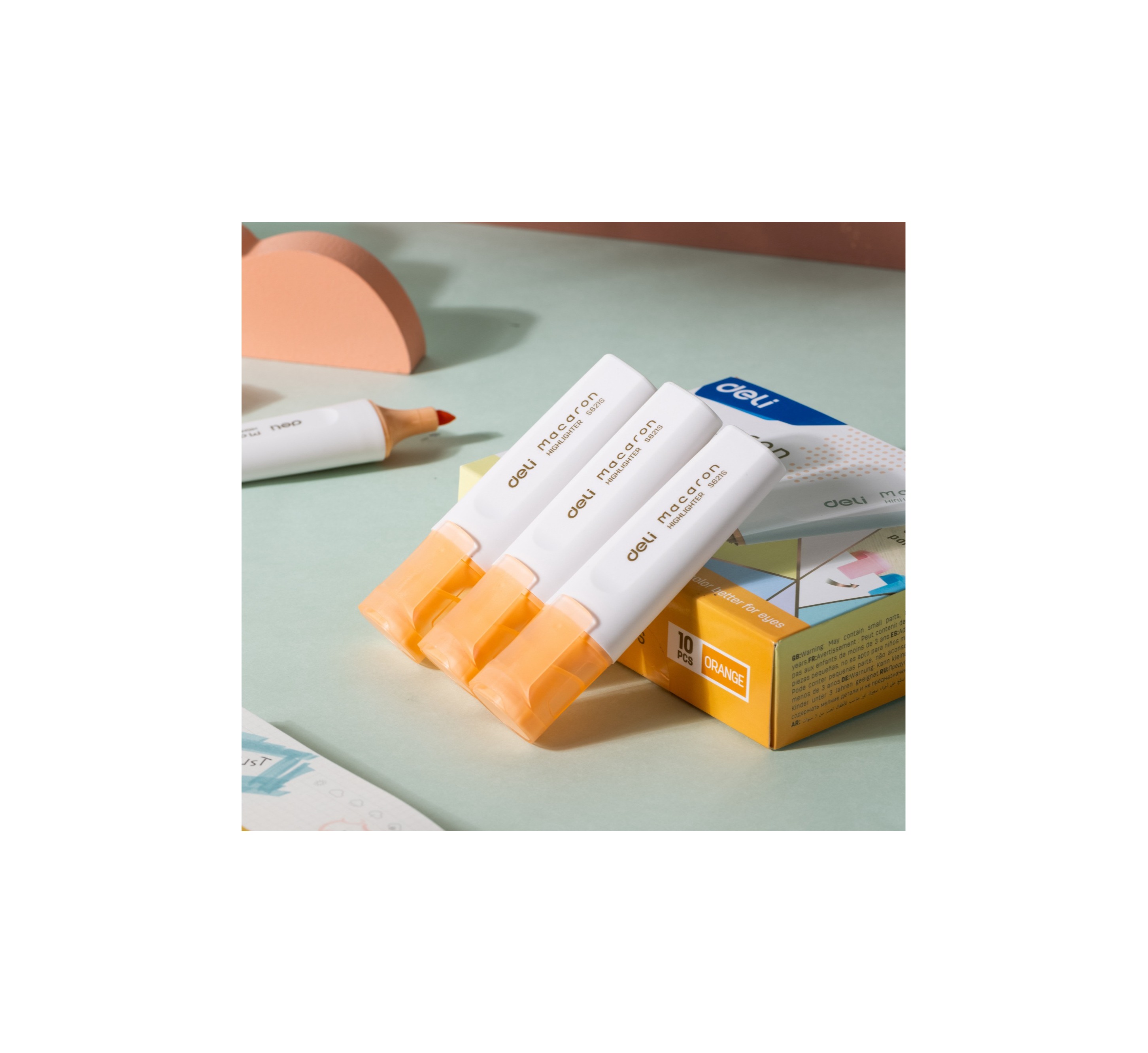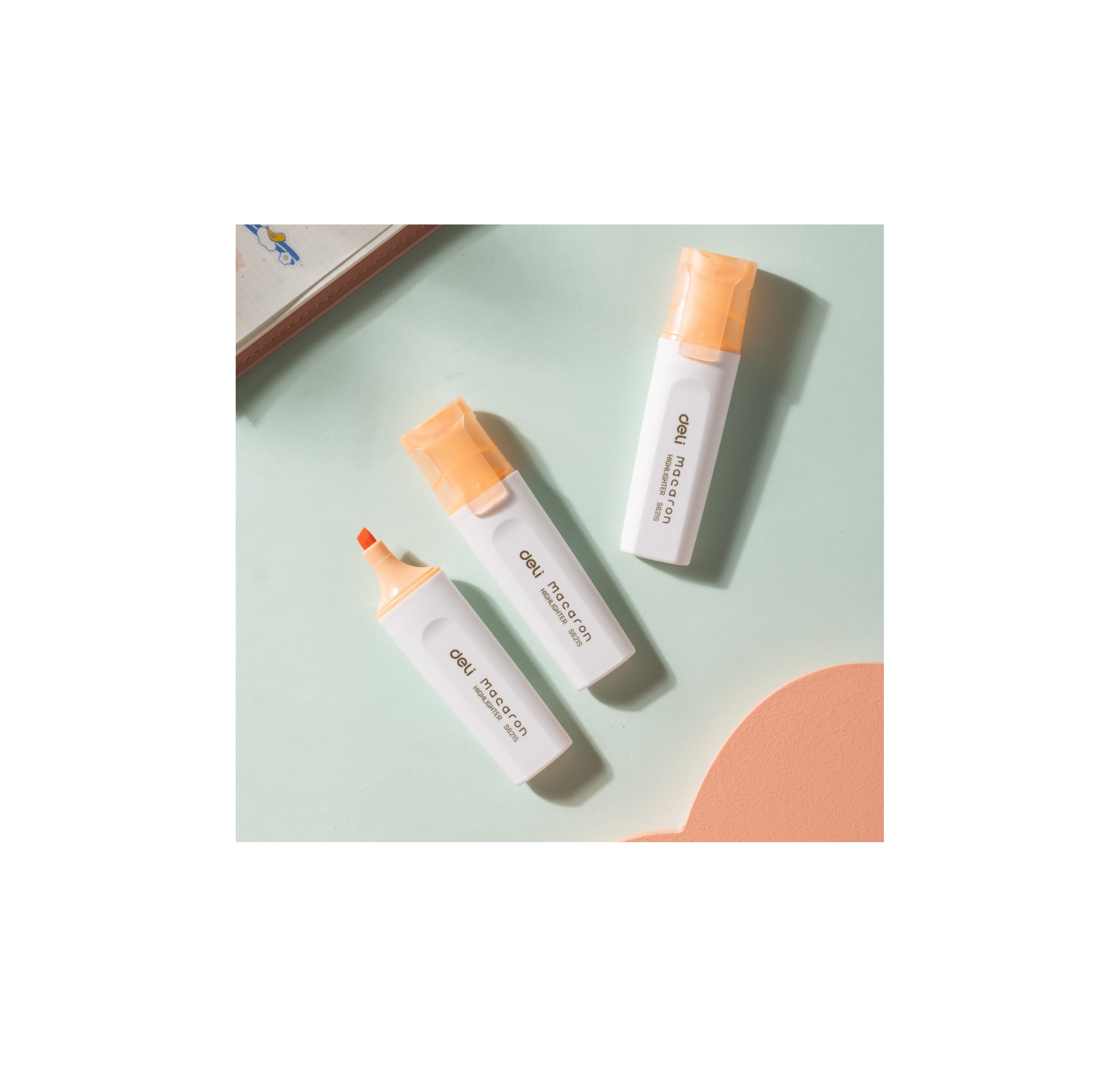Текстовыделитель Deli Macaron отличный выбор. Скошенный наконечник позволяет оставлять за собой след от 1 до 5 мм, а удобный и надежный колпачок облегчит хранение. Чернила на водной основе не имеют запаха, мгновенно высыхают на любом типе бумаге, не пропитывая ее и не смазывая текст. Большой запас чернил и их экономичный расход. Цвет: оранжевый. Приятный и оригинальный дизайн порадует каждого покупателя.