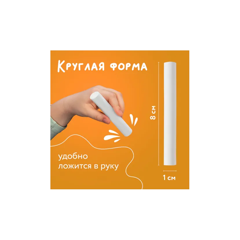 Изготовлен из высококачественного природного сырья без химических добавок. Не содержит твердых включений и не портит поверхность досок. Благодаря удобной круглой форме легко ложится в руку. Обеспечивает мягкое письмо. Не оставляет царапин. Легко смывается водой. Длина - 80 мм, диаметр - 10 мм. Поставляется в количестве 100 штук в картонной коробке.