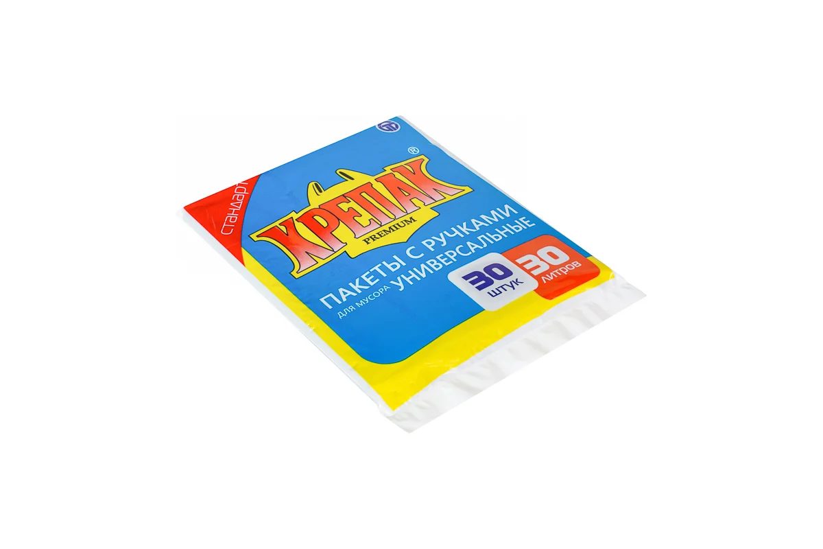 Мешки для мусора с ручками Крепак 30 л, в стопе 30 шт. Представляют собой пакеты черного цвета, которые удобно транспортировать благодаря ручкам, вырубленным из самого «тела» пакета. Ручки, помимо их основной функции, также можно использовать в качестве усиленных герметичных завязок.