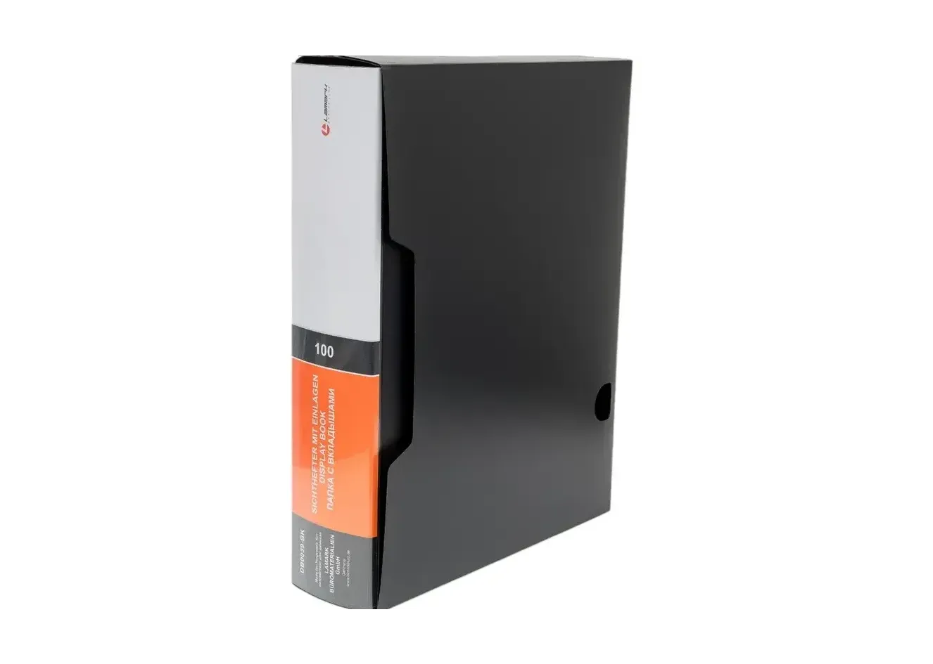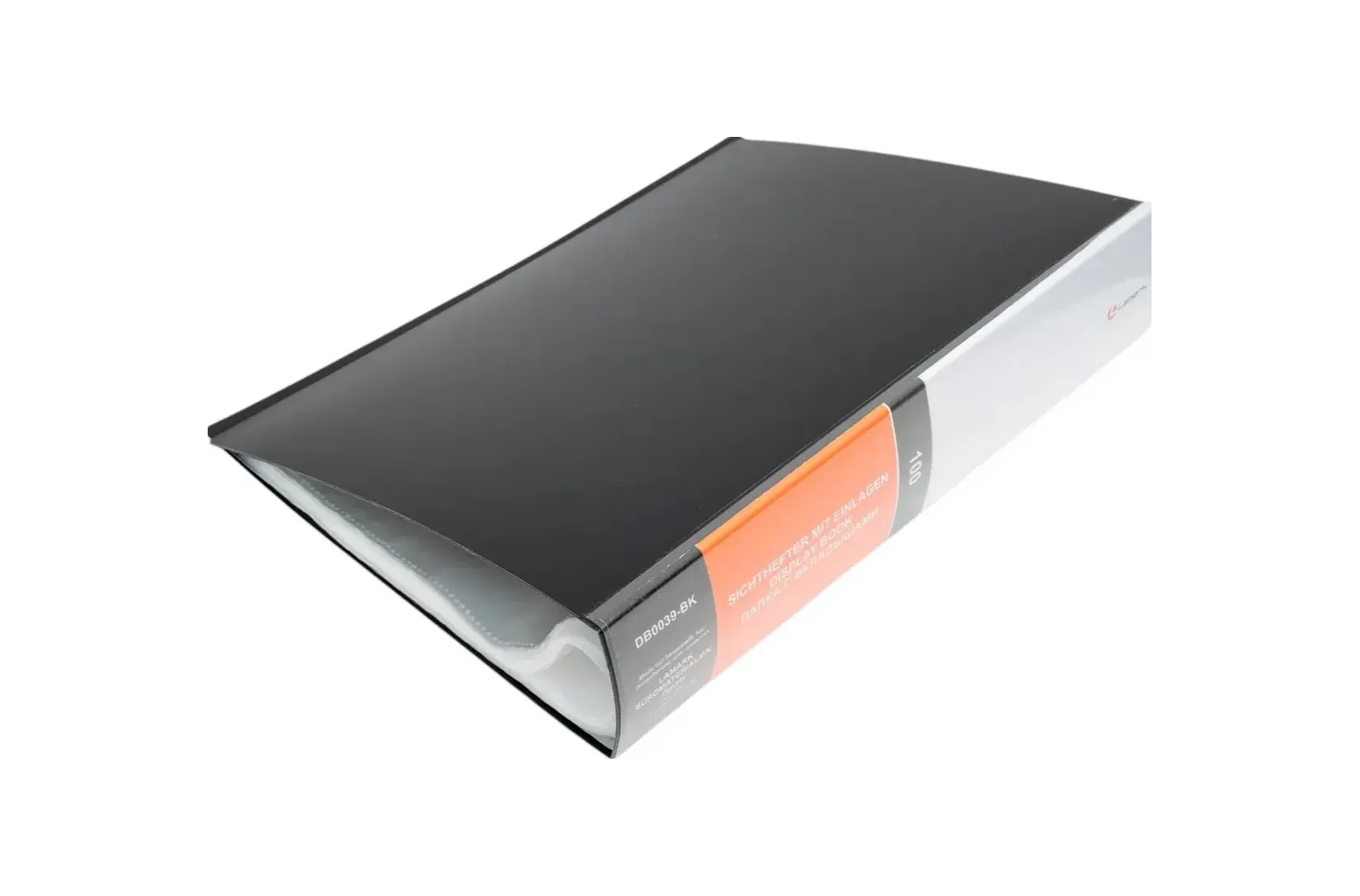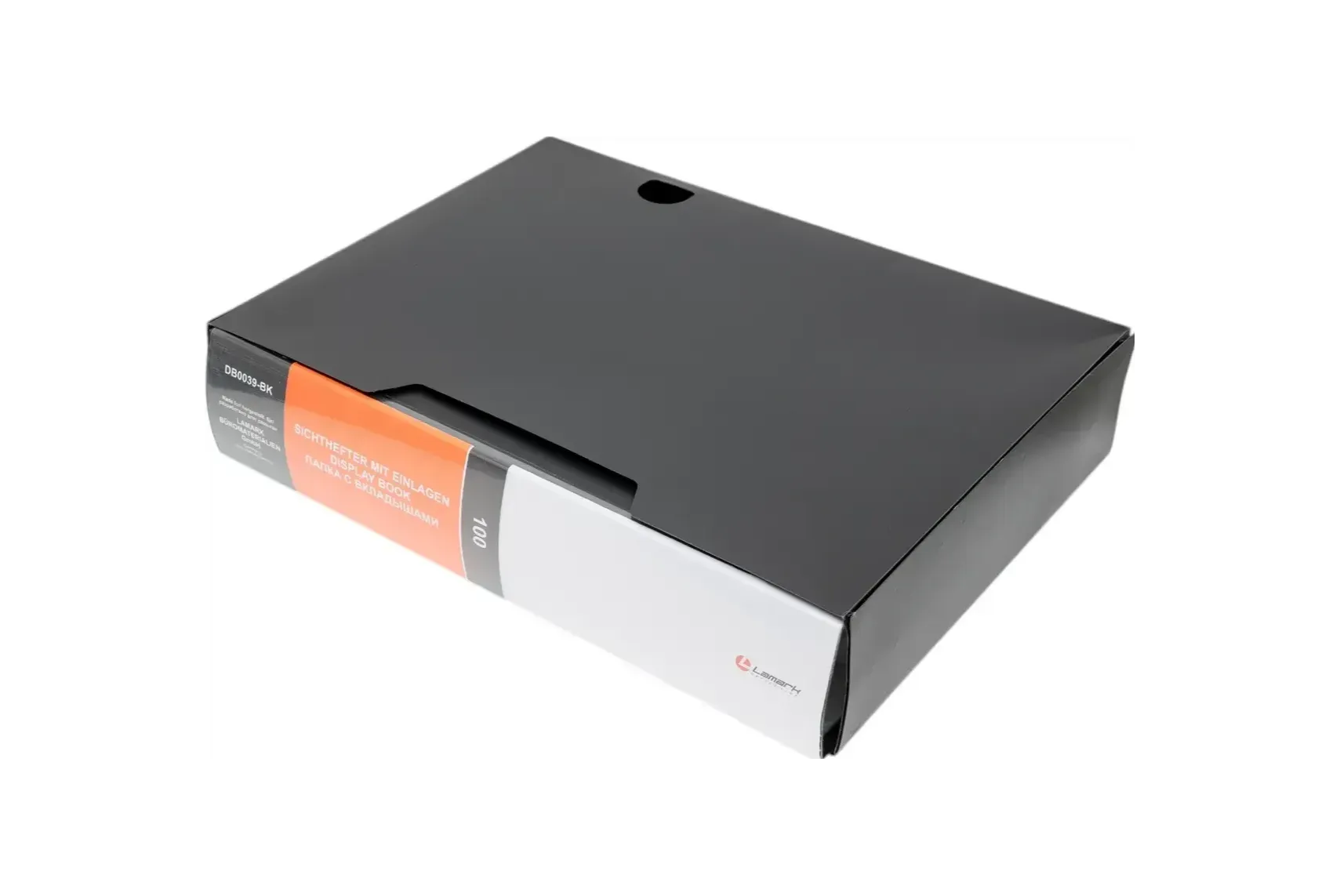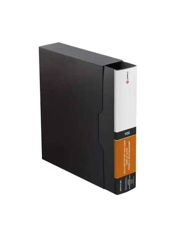 Папка Lamark со 100 прозрачными вкладышами, в коробе, толщина пластика 1 мм, высококачественный полипропилен. На корешке папки карман с индексной вставкой, ширина корешка 66 мм. Цвет черный.