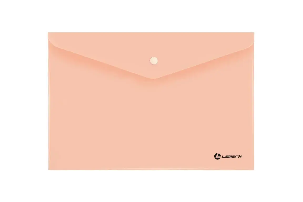Папка-конверт на кнопке LAMARK А4 глянцевая, толщина пластика 0,18 мм (высококачественный полипропилен). Размер 335х235 мм. Предназначена для хранения и транспортировки документов формата А4.
