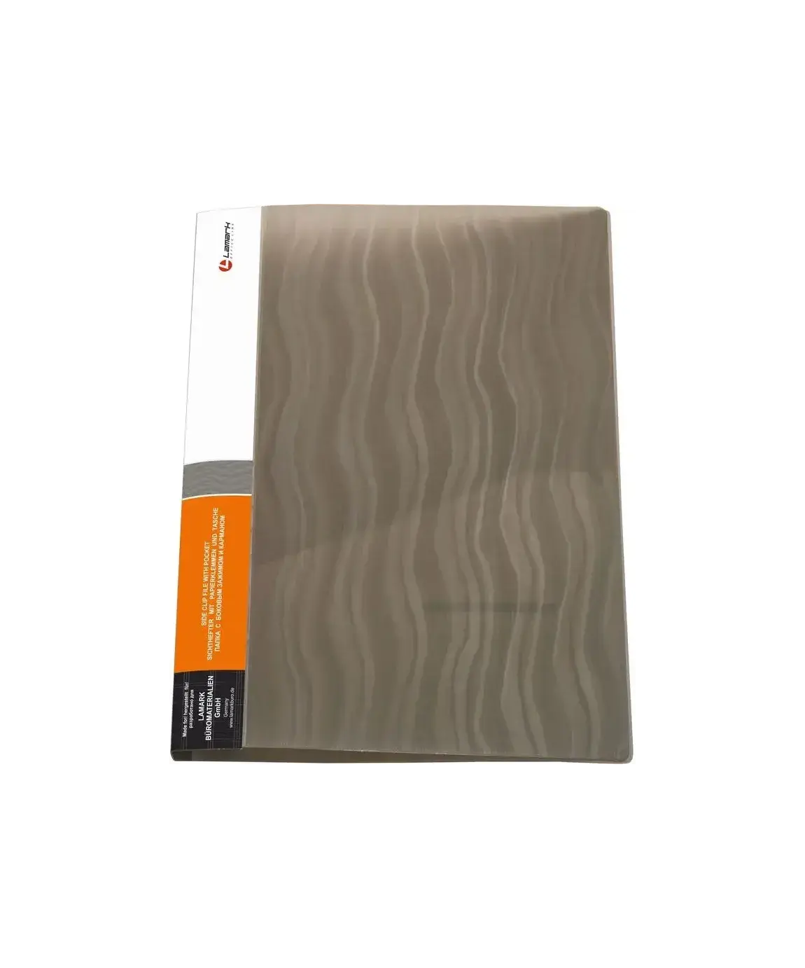 Папка с боковым металлическим зажимом Lamark изготовлена из пластика толщиной 0,60 мм, высококачественный полипропилен РР, цвет серый полупрозрачный с текстурой "ВОЛНА". Дополнительный карман внутри. На торце карман с индексной вставкой. Корешок 18 мм. Предназначена для подборки и хранения документов А4 формата.