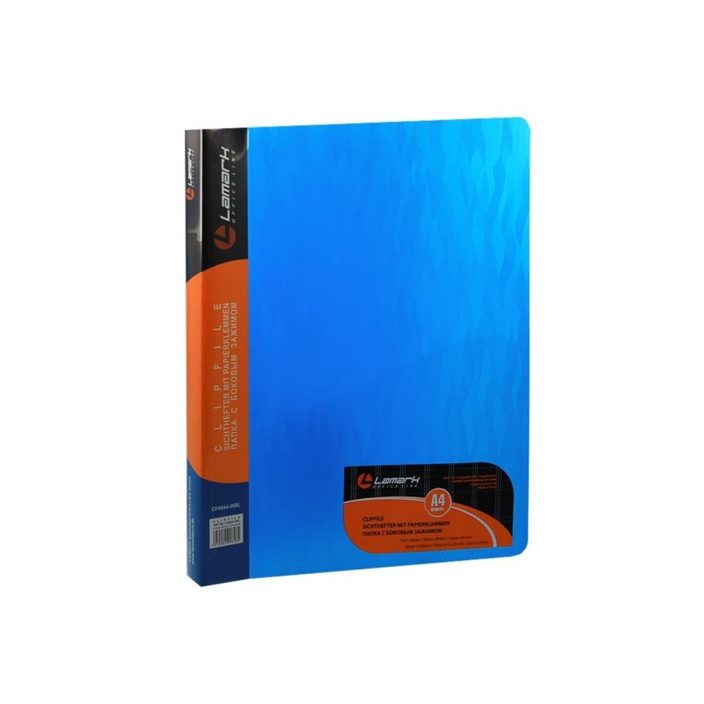 Папка с боковым металлическим зажимом Lamark изготовлена из пластика толщиной 0,60 мм, высококачественный полипропилен РР, цвет синий полупрозрачный с текстурой "ВОЛНА". Дополнительный карман внутри. На торце карман с индексной вставкой. Корешок 18 мм. Предназначена для подборки и хранения документов А4 формата.