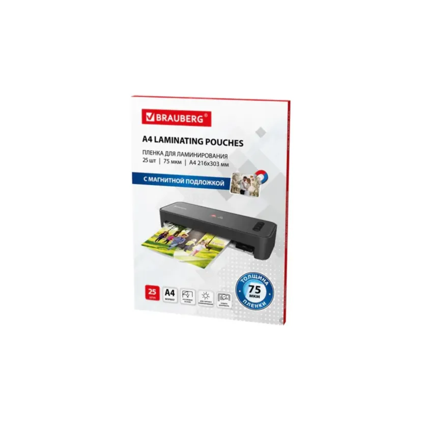 МАГНИТНАЯ пленка для ламинирования BRAUBERG надежно защитит документы от всех внешних воздействий. Благодаря магнитному слою, после ламинирования плёнку можно разместить на магнитной доске в школе, на холодильнике, или другой подходящей поверхности.
