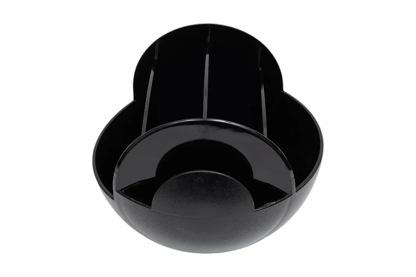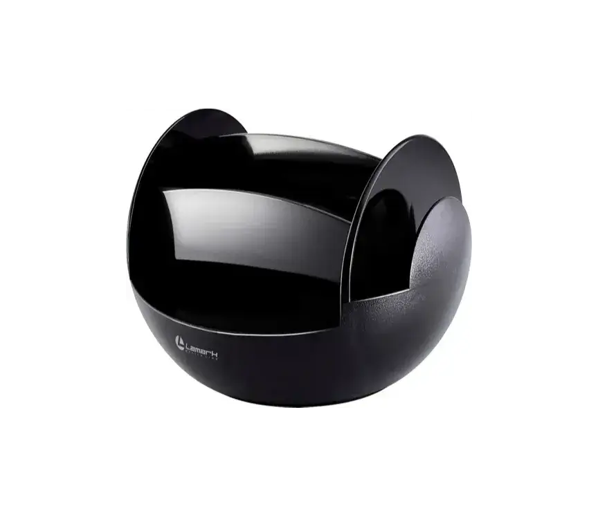 Подставка для канцелярских принадлежностей Lamark Berlin сферической формы выполнена из высококачественного пластика, снабжена поворотной платформой на 360 град. для удобства пользования. 6 отделений, цвет черный. Поставляется в цветной картонной коробке.