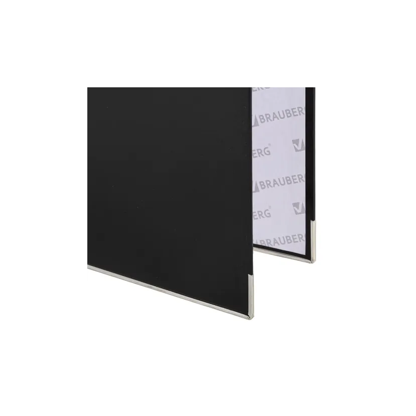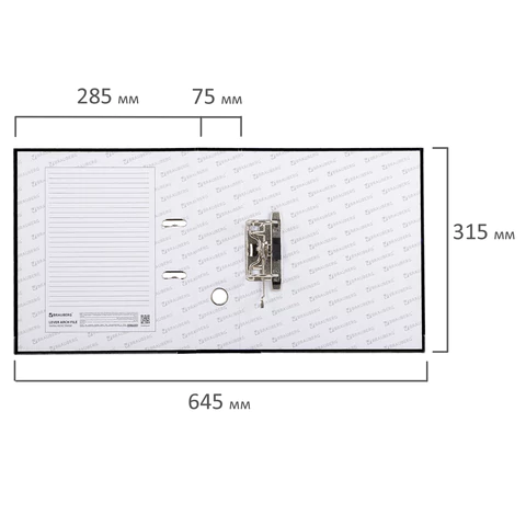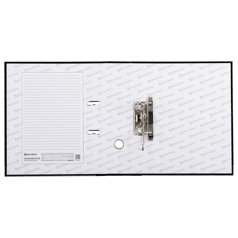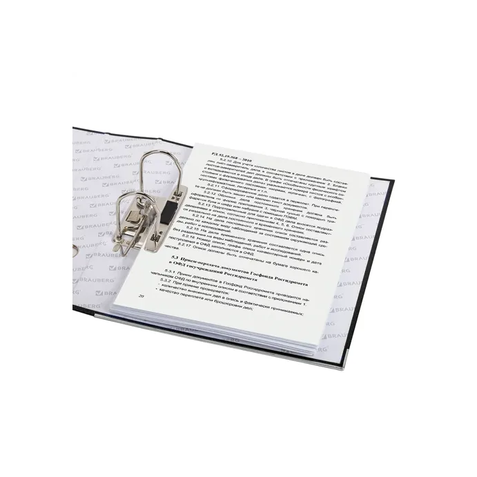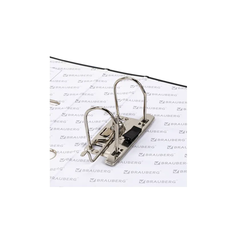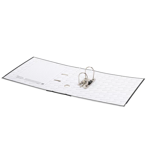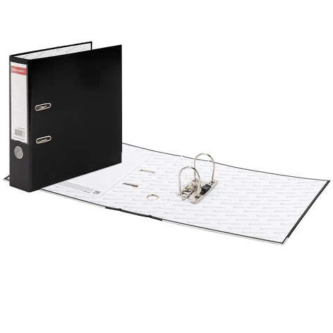 Папка формата А4 с вертикальной ориентацией изготовлена из плотного картона, ламинированного черной пленкой из полипропилена, который не имеет резкого запаха и отличается долговечностью и морозоустойчивостью. Благодаря такому плотному покрытию допустима влажная уборка изделия. Ширина корешка в 75 мм позволяет разместить до 500 листов. Нижние края папки защищены металлическими уголками, что увеличивает срок службы в 2 раза. Прорези для колец на внешней крышке позволяют оставаться папке закрытой даже при большом количестве бумаг, а надежный арочный механизм легко справляется с ежедневными нагрузками. Корешок снабжен этикеткой для маркировки содержимого, что позволяет структурировать информацию. Такая папка станет незаменимым помощником для работников с документацией, а строгий черный цвет папки-регистратора отлично впишется в офисный интерьер.