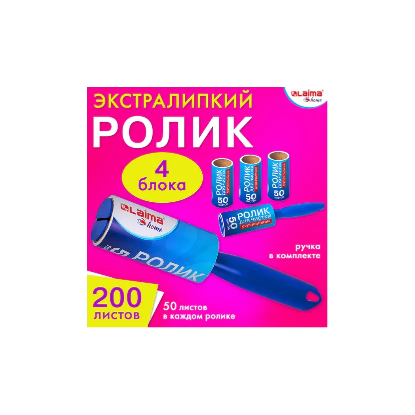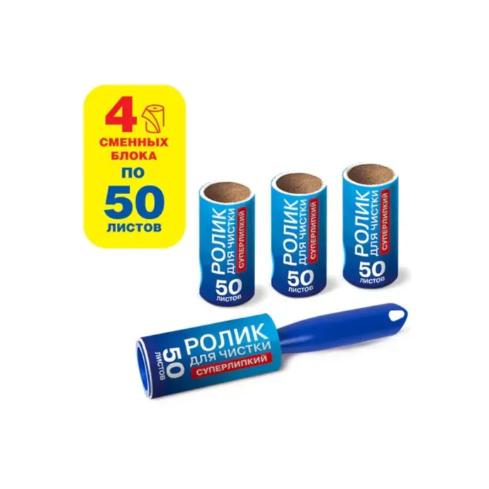 Когда липкая поверхность загрязнится, просто удалите этот слой - и ролик снова готов избавить ваши вещи от шерсти, волос, пыли, пуха и других мелких загрязнений. Ширина очищающей поверхности - 10 см. Удобный и практичный комплект со сменными блоками: купи один раз, а пользуйся и сияй чистотой много раз! В комплекте 4 сменных блока, 1 ролик-рукоятка. 50 СУПЕРЛИПКИХ слоев в каждом сменном блоке!