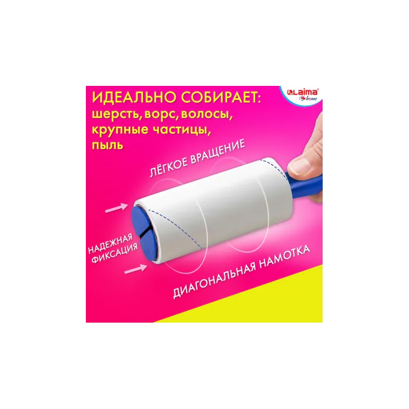 Суперлипкий ролик для одежды LAIMA идеально подойдет для очистки одежды, мебели, для очистки салона автомобиля ( особенно велюрового или тканевого) и других поверхностей от шерсти, ворсинок, волос, частиц пыли, катышек, ниток, мелких крошек и пуха. Ролик для очистки вещей и уборки волос изготовлен из высококачественных материалов, что обеспечит эффективное избавление поверхности от загрязнений. В комплект входит один блок-ролик и запасные сменные блоки. Липкий слой легко убирает загрязнения не оставляя следов на поверхности очищаемого материала. Подходит для любых изделий из кожи, ткани и замши. В ролике 50 отрывных листов.