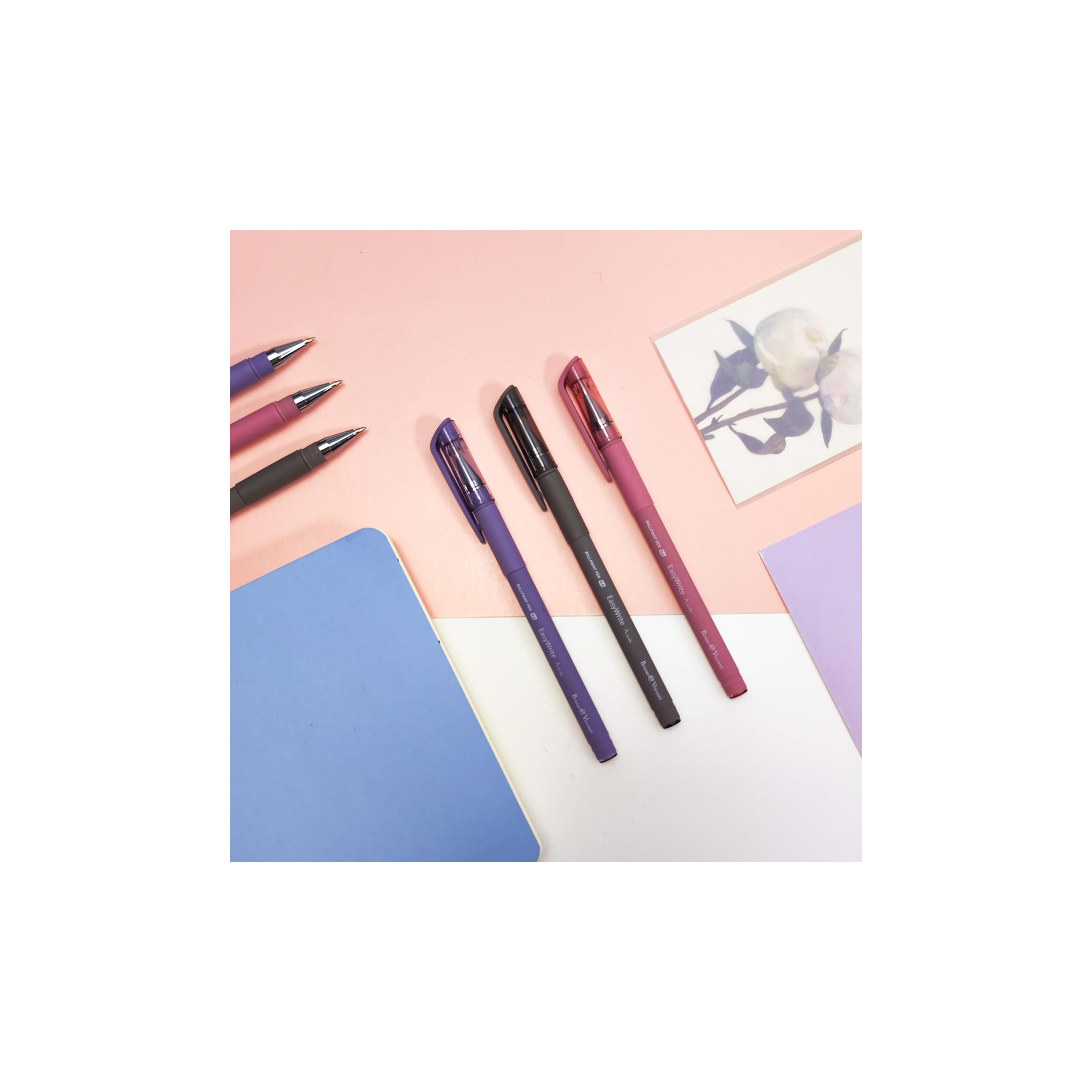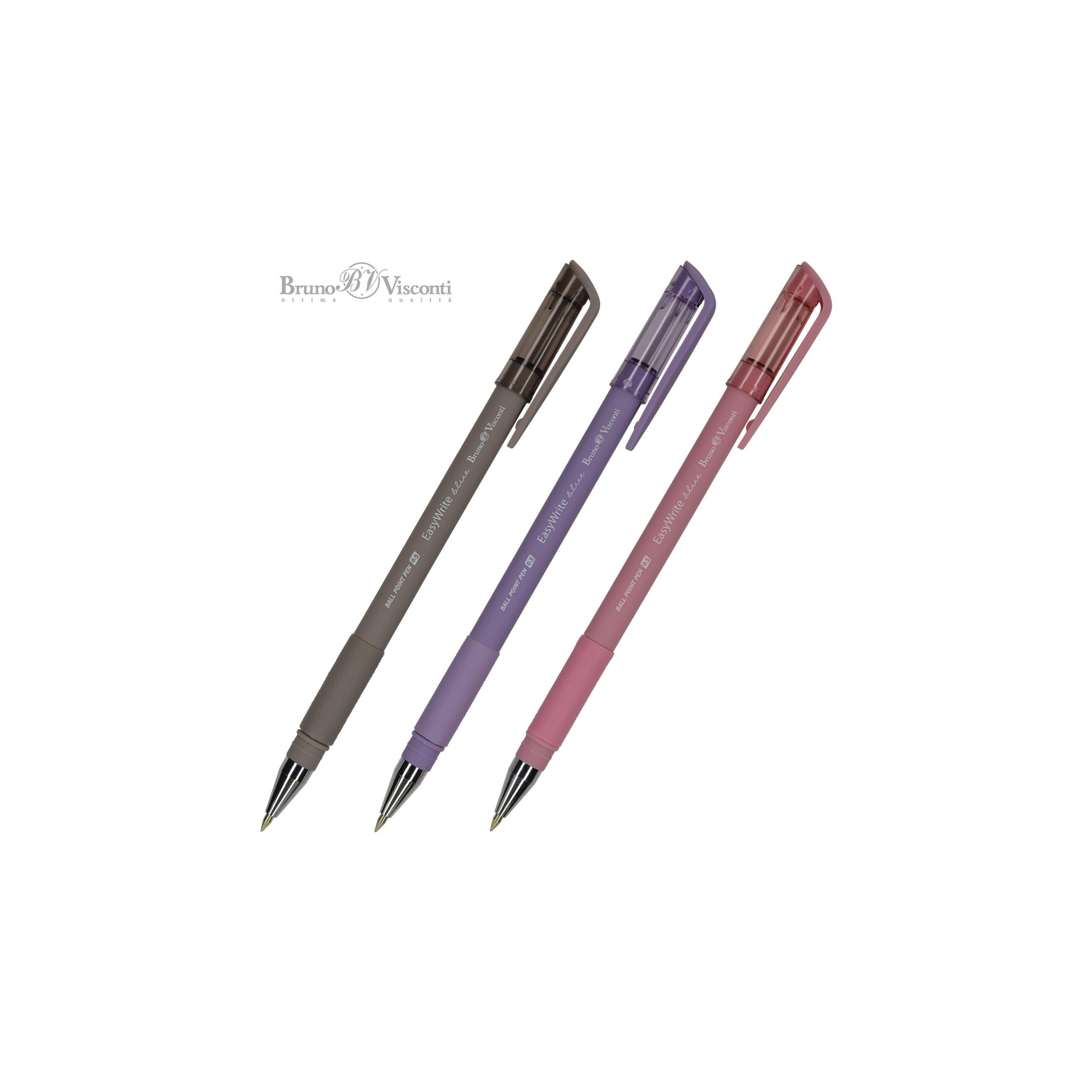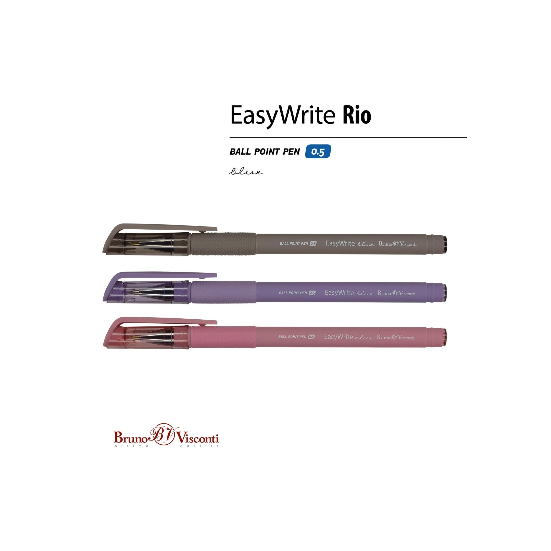 Ручкa BrunoVisconti шариковая, 0.5 мм, синяя EasyWrite. RIO Арт. 20-0046 Ручки «EasyWrite» отличаются повышенным комфортом и эргономичностью. Все это благодаря покрытию Soft Touch и прорезиненному грипу, позволяющим осуществлять захват ручки без напряжения кисти. Стержни с шариковым пишущим узлом толщиной 0.5 мм заправлены немецкими пигментными чернилами (Dokumental) синего цвета. Чернила не растекаются, не пачкают, обеспечивают мягкое письмо. Все ручки снабжены яркими колпачками с упругим клип-зажимом под цвет корпуса.