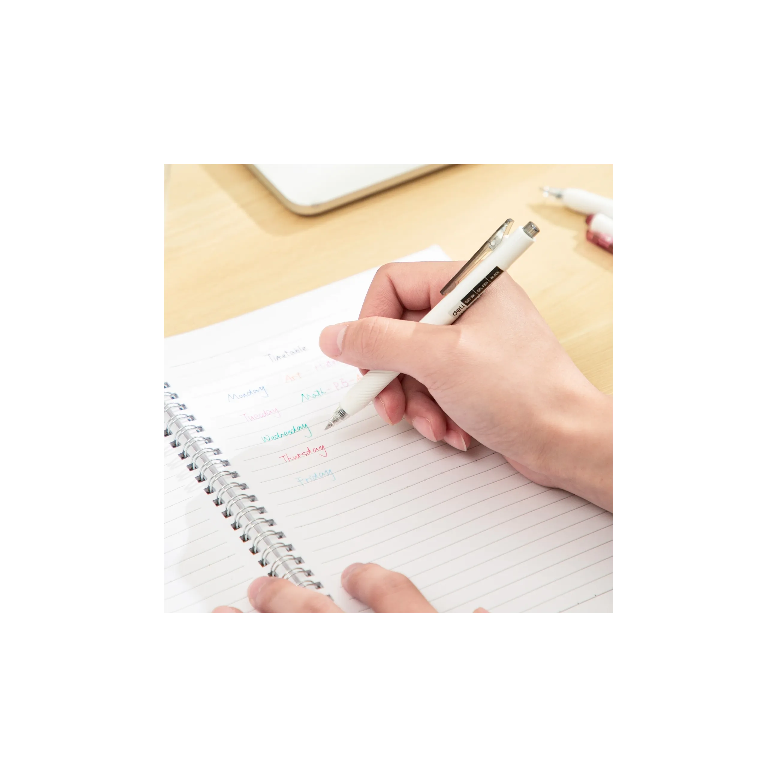 Материалы корпуса ручки Deli EG22-BL -пластик, ручка оснащена автоматическим механизмом подачи стержня, что упрощает процесс письма и снижает напряжение при использовании. Цвет чернил - синий.