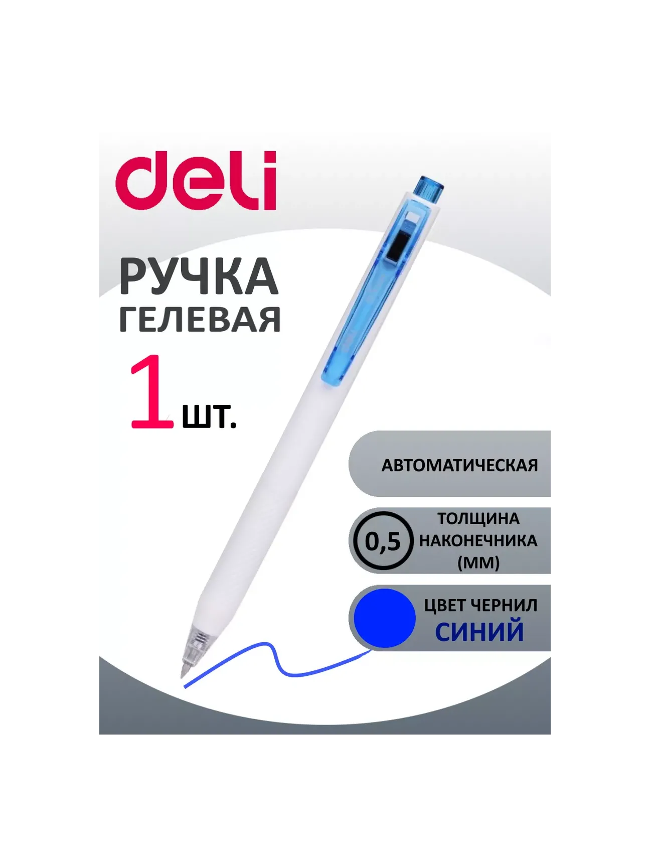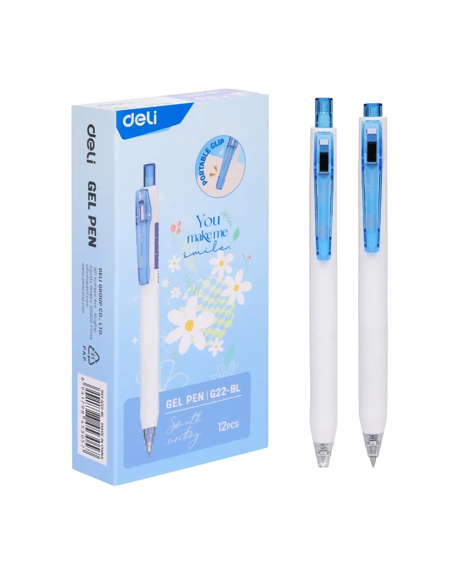 Deli EG22-BL - это автоматическая ручка гелевая с белым/синим корпусом с эргономичным резиновым держателем и клип-прищепкой и толщиной линии письма 0.5 мм, которая отличается высокой комфортностью использования и надежностью.