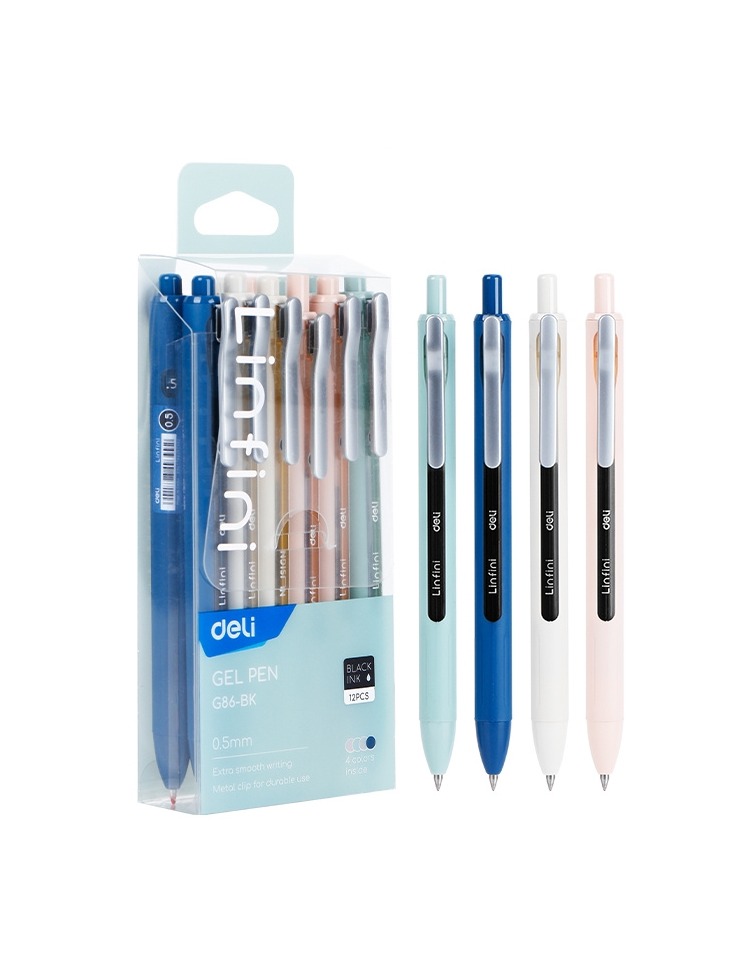 Гелевая ручка Deli EG86-BL, пулевидный наконечник, пишущий узел 0,5 мм, металлический клип. Черные чернила обеспечивают четкость и яркость письма. Тактильно приятное покрытие на ручке позволяет долго писать без усталости. Ассортимент цветов корпуса делает ручку стильным аксессуаром для школы или офиса. Эта ручка идеально подходит для учащихся, студентов и профессионалов, которые ценят качество и удобство в письме.