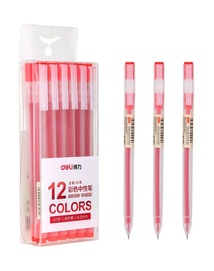 Гелевая ручка Deli А-119 красная с игловидным наконечником обеспечивает комфортное и качественное письмо. Имеет круглый прозрачный корпус. Детали ручки выполнены в цвет красных чернил. Диаметр пишущего узла, равный 0,5 мм, создает линию письма, равную 0,35 мм.