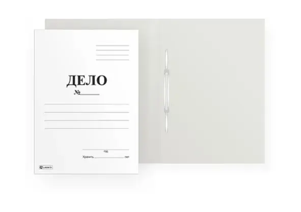 Картонная папка с металлическим скоросшивателем предназначена для хранения документов. Вместимость до 200 листов стандартной плотности. Размер 305х220 мм, ширина корешка 25 мм. Подходит для документов формата А4 и меньше. Изготовлен из белого мелованного картона плотностью 400 г/м2. Имеет надпись "Дело №" на обложке.