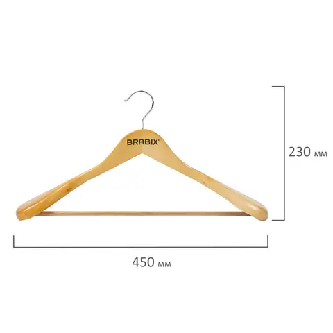 Вешалка-плечики BRABIX "Люкс" для одежды с перекладиной, анатомическая. Вешалка изготовлена из натурального дерева. Лакированная, с невыкручивающимся крючком. Предназначена для бережного хранения одежды. Обладает долговечностью и прочностью, не прогибается под тяжелой верхней одеждой. Эстетична, отлично вписывается в общий интерьер гардеробной. Размер модели составляет 45 см.