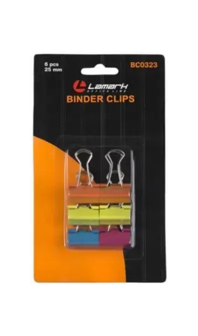 Зажимы для бумаг цветные НЕОН. Размер 25 мм. Изготовлены из стали с цветным покрытием. Позволяют скреплять до 100 листов. Не деформируют бумагу. Поставляются в блистерной упаковке по 6 штук в ассортименте цветов.
