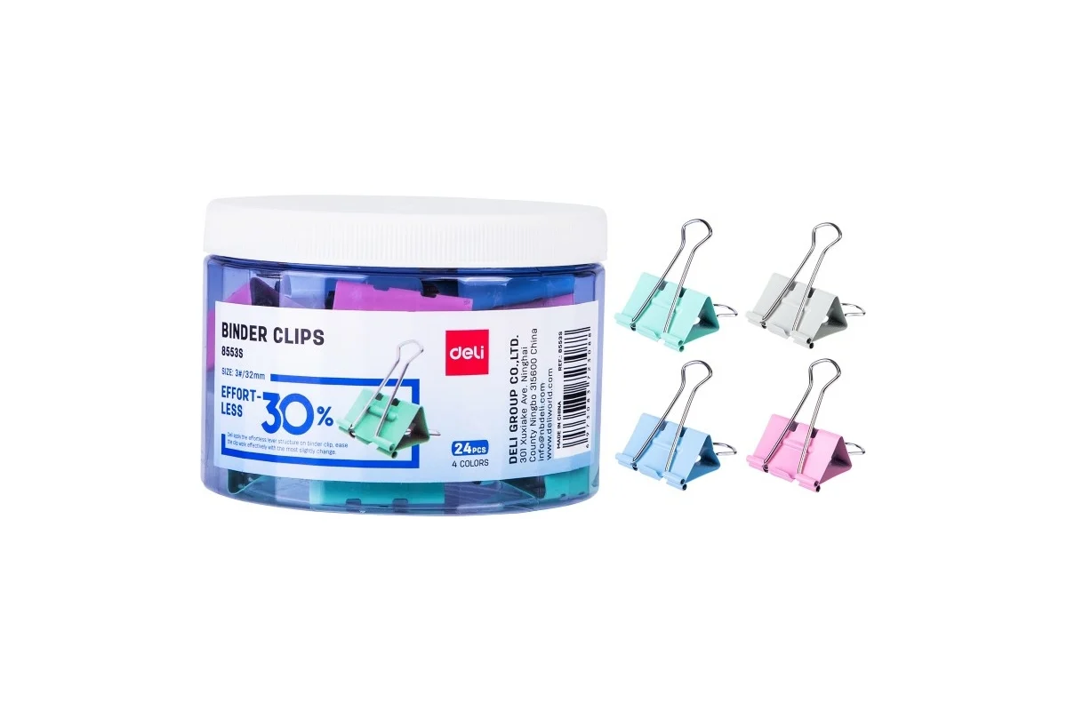 Зажимы для бумаг цветные. Размер 32 мм. Изготовлены из стали с цветным покрытием. Позволяют скреплять до 140 листов. Не деформируют бумагу. 24 штук в пластиковой тубе. За счет высокой прочности прослужат долгое время. Зажимы не ржавеют, поэтому не испортят листы. Не деформируют бумагу, благодаря чему не оставляют следов.