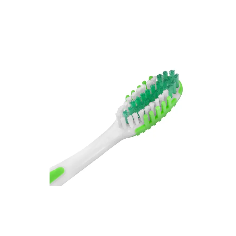 Щетина средней жесткости обеспечивает максимальное очищение, щетинки эффективно удаляют налет и бактерии, предотвращая кариес и зубной камень. Компактная головка щетки легко проникает в труднодоступные места, а массажные вставки обеспечивают бережный уход за дёснами и их защиту. Удобная ручка для комфортного захвата.
